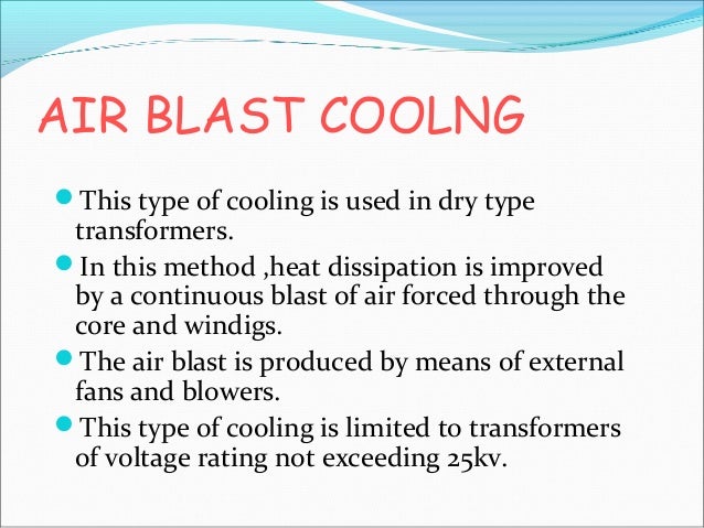 Transformer oil to atmospheric air by natural means. This form of cooling is known as ONAN (Oil Natural, Air Natural) type of cooling. (Oil Natural Air Forced) type of cooling. 1.5.3 OFAF Type Cooling To obtain better rate of heat dissipation than ... Fetch Full Source